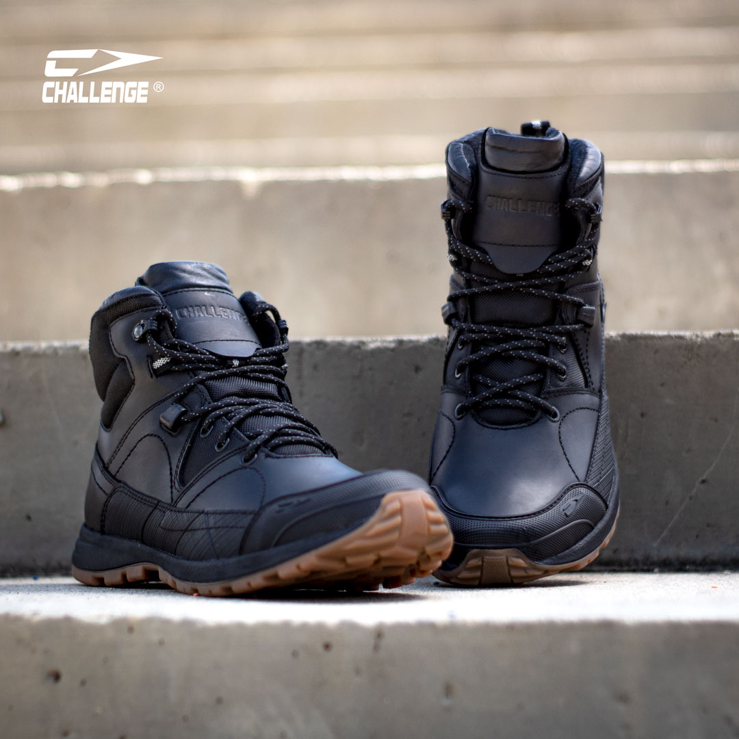 Hecha en cuero, lona impermeable huracán, con refuerzo en puntera y talón, suela en caucho, cordoneras en TPU, plantilla de silicón.